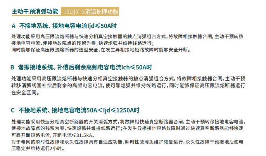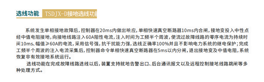 概述; 单相接地故障是电网运行中最普遍的一种故障形式,约占系统电气故障的80%以上。我国3~66kV中压电网,大多采用中性点非有效接地的运行方式(又称为小电流接地方式),这是因为中性点不接地电网发生单相接地故障时,供电电压(线电压)依然对称并且接地电流一般不大,不需要立即切除线路,这就大大提高了供电可靠性。 但是随着电网规模的扩大,中压线路电缆化率的提高,以及城网、农网、企业电网混合的配电网络越来越复杂,单纯的采用不接地系统或者消弧线圈接地系统的运行方式已不能满足我国相关规程中对中压中性点非有效接地系统,在发生单相接地故障时“能够维持运行2小时”的规程要求。 根据对各类型中压配电网的故障调研发现,由单相接地故障引起的跳闸事故率逐年提高,特别是企业电网因单相接地引起的跳闸事故占总短路故障的80%。同时,伴随中压配电网单相接地故障产生的弧光接地过电压、铁磁谐振、小电流选线准确率低等问题严重影响着中压电网的运行可靠性,甚至由于单相接地未得到及时有效处理引起的人身伤害事故偶有发生,造成严重的电力安全事故。